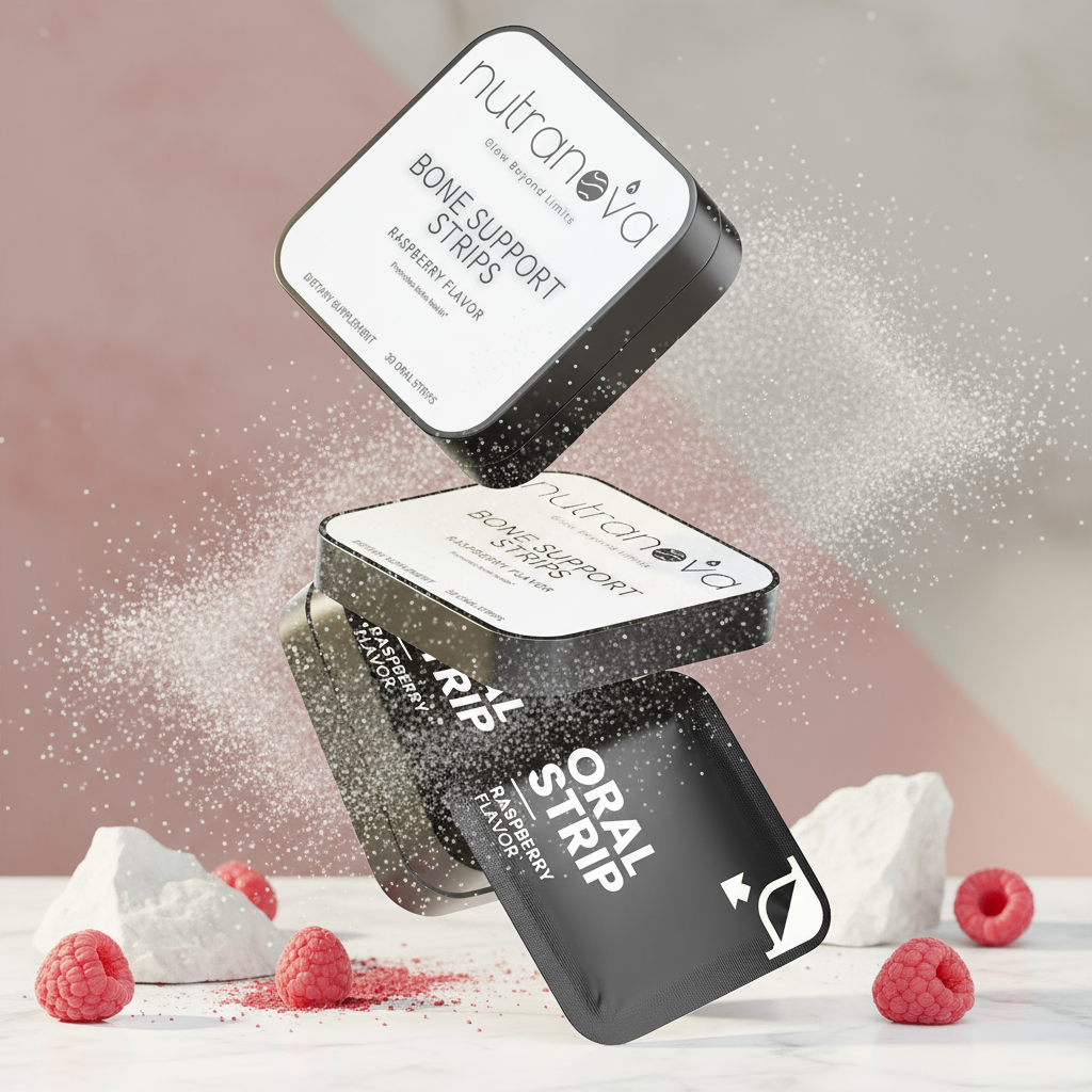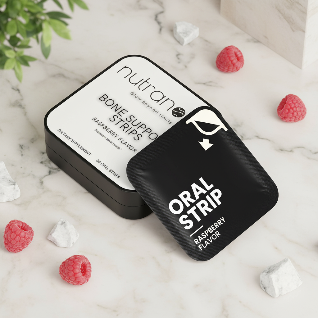 These raspberry-flavored oral strips dissolve quickly on your tongue, offering a simple and tasty way to support bone and joint health anytime.